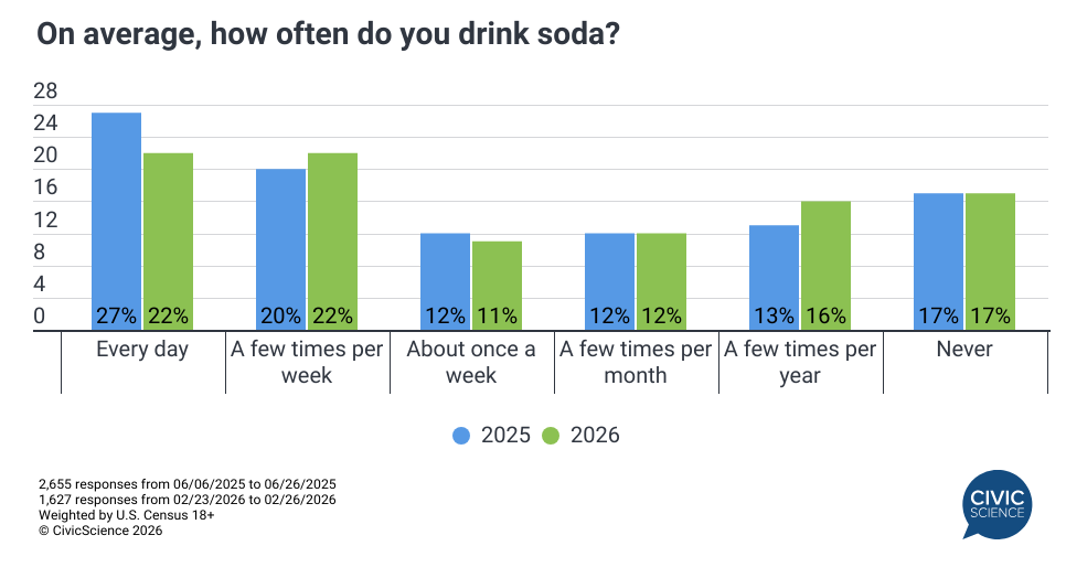 3. Americans are drinking soda less frequently than they did last year.