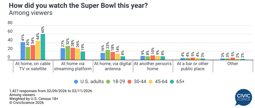 3. Non-traditional means, such as streaming and digital antennas, carve out a significant share of Super Bowl LX viewership.