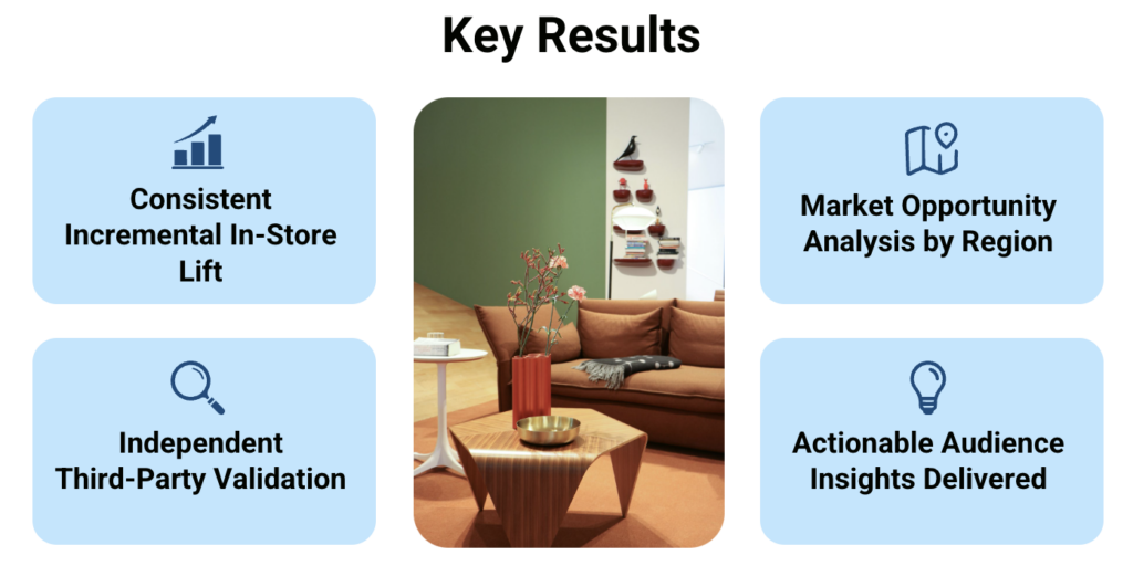 For a national furniture retailer operating in a competitive, considered-purchase category, proving that digital advertising translates to real in-store traffic is notoriously difficult. Traditional attribution models rely on assumptions and proxy signals — leaving marketers without a reliable way to connect ad exposure to physical store visits.