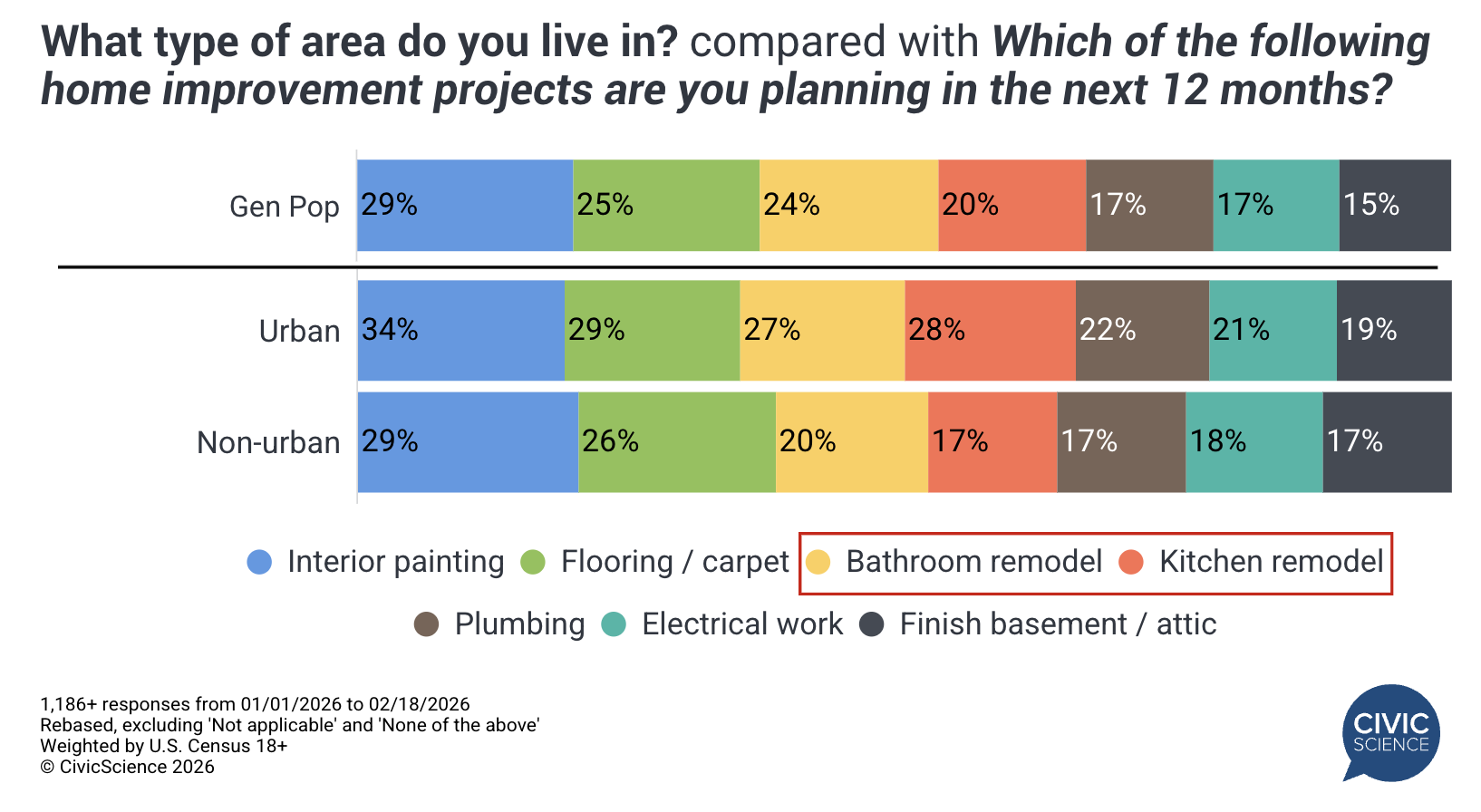 As the days grow longer and spring looms on the horizon, many will begin thinking about home improvement projects. However, the state of home improvements is more nuanced this year, and CivicScience has new data on what home improvement will look like in 2026: