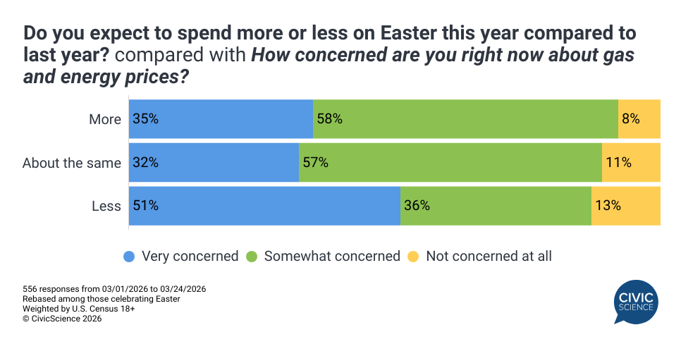 Notably, those who believe the economy will get worse in the next six months are the most likely to still be deciding on their Easter plans. Additionally, slightly more than half of those who are spending less on Easter this year (51%) are ‘very’ concerned about gas and energy prices right now. As global events continue to fuel domestic financial strain, these pressures are clearly weighing on consumer wallets this spring.