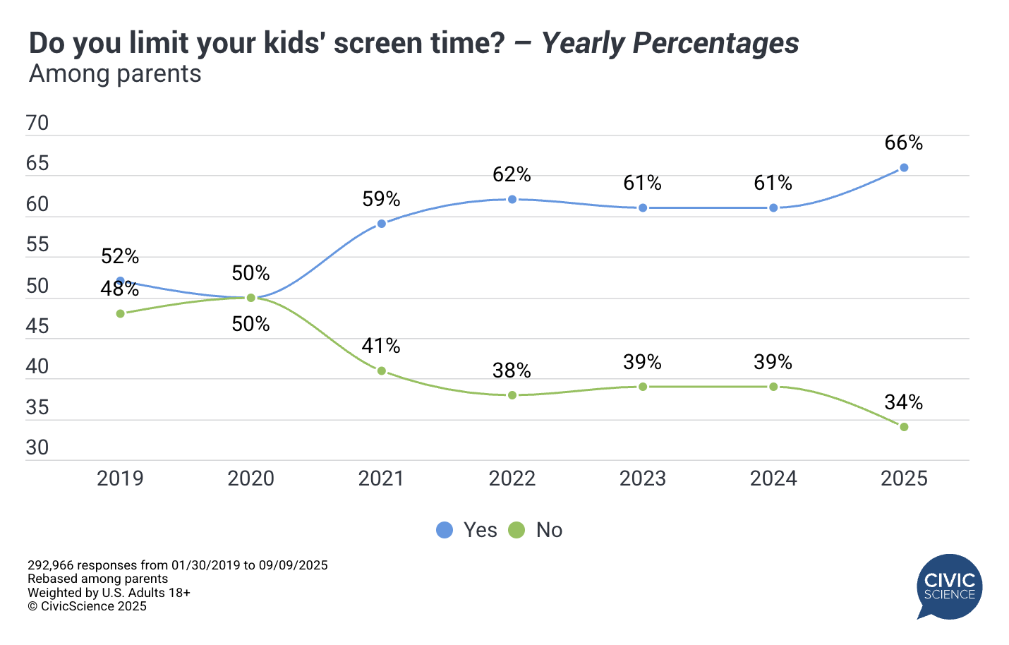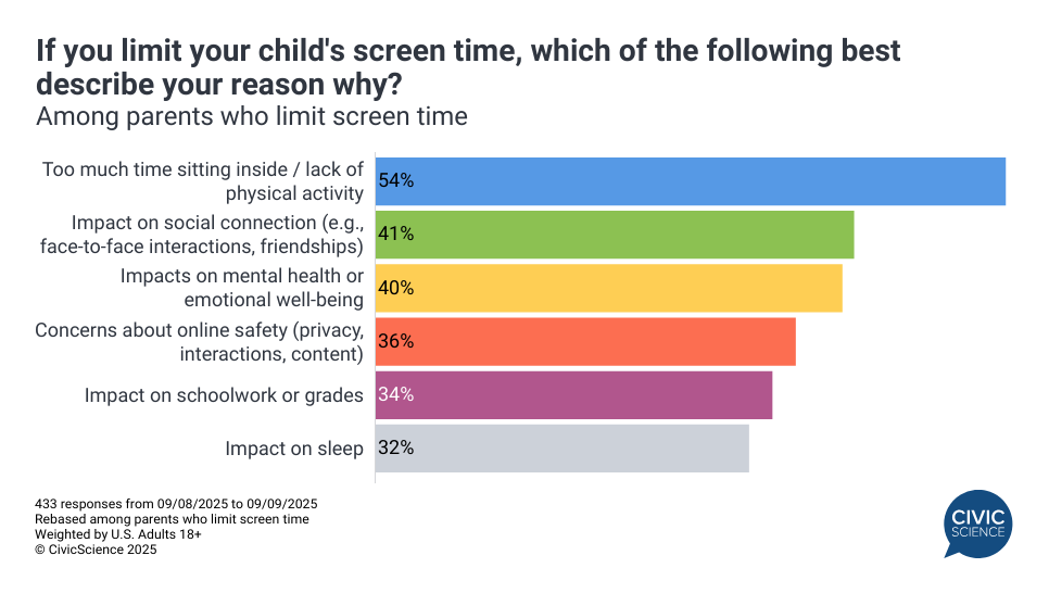 How do Americans feel about the screen time their kids are getting, and what are the key motivators behind setting screen time limits? Here’s what the latest CivicScience data shows: