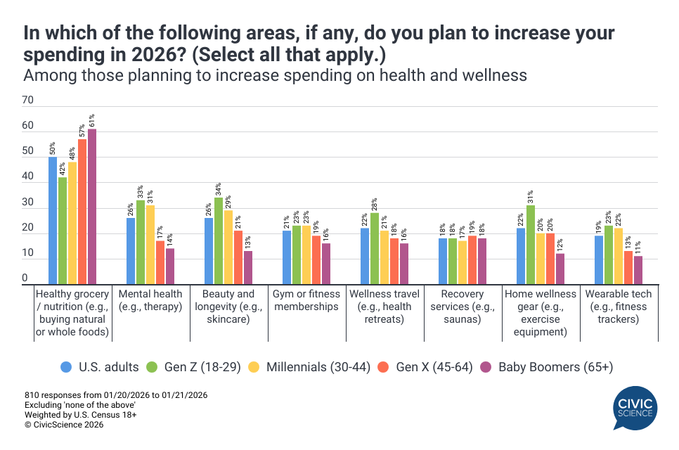 Nonetheless, Americans appear committed to other forms of self-care in 2026. For the second year in a row, health & wellness remains the one and only area of retail where Americans plan to (deliberately) increase spending year over year. Contributing to that trend is a widely expanded definition of the category – it’s not just health foods and gym memberships anymore – driven by the rise of mental and emotional wellness. No surprise, women appear to be far better and more intentional at managing their mental well-being through “small wins,” indulgences, and creative means of connection and escape.