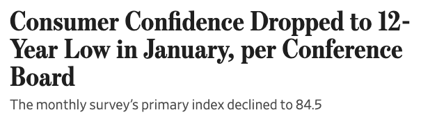 Over the past week, the two most tenured and trusted consumer confidence gurus – the University of Michigan and The Conference Board – released their January results. These were the respective headlines, just four days apart: From the Wall Street Journal on January 23rd: