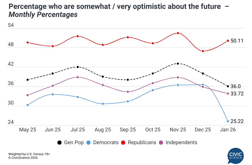 Incredibly, nearly one in five Americans has no strong opinion about Donald Trump. In our 3 Things to Know this week, we took the rare (for us) step of publishing our presidential approval numbers. We found that 32% of U.S. adults approve of the job Trump is doing, compared to 51% who disapprove. Before you go comparing that to other polls you see in the news – where DJT has approvals in the high 30s or low 40s – understand that we aren’t only surveying likely voters (by design). Also, if we throw out the 17% who (amazingly) don’t fall into either bucket (which most news polls do), the numbers look a lot more like 40/60. In related news, we also learned that Democrats are growing increasingly pessimistic about the long-term future, and everyone is more pessimistic about short-term energy costs.