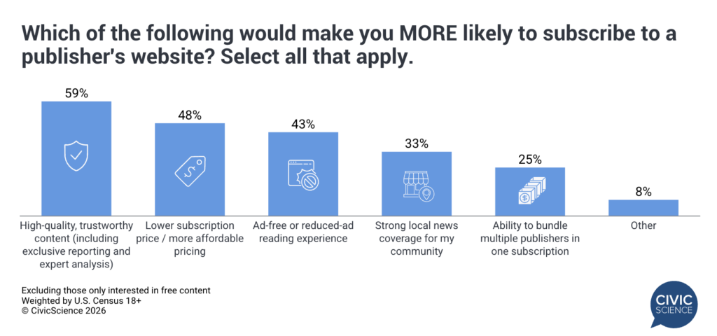 The potential for long-term growth in subscription online news is way bigger than you think. After years of stagnation, the percentage of US adults who pay to subscribe to online content in news, sports, pop culture, and the like has been surging since 2024 – up over 40% during that time. Surprisingly, that growth is being driven by younger consumers. The percentage of Gen Z’s who pay for at least one online subscription outnumber Boomers by 3-to-1. That means there’s a huge opportunity – and tons of customer lifetime value – in winning these paying audiences now. You should read the full report to see who these subscribers are, what they’re reading, how much they’re spending, and why. It’s way more than we should probably give away for free but I’m feeling generous.