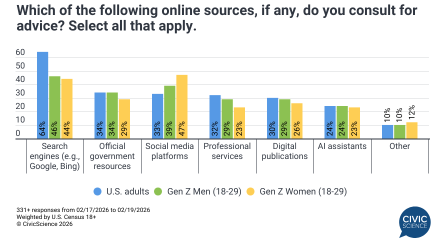 Promises of bigger returns have prompted an early surge in tax filings this year. In our 3 Things to Know this week, we learned that 27% of U.S. adults have already filed their taxes, up from 20% at the same time last year. No doubt, those Big Beautiful Bill windfalls had something to do with it. We also looked at what online resources people turn to for advice, with a special focus on Gen Z. Online search is still the number one starting point for most Americans – although Gen Z women are more likely to turn to social media. Also, AI assistants are on the move. Finally, we learned that 88% of U.S. adults are at least somewhat concerned about the state of public infrastructure where they live. It’s almost as if the government should do something about that.