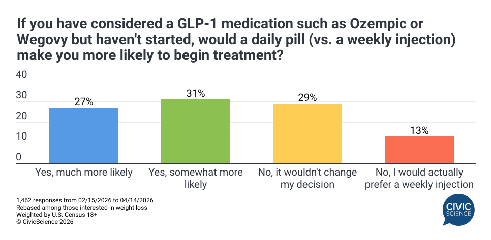 We could be nearing the next big step change in GLP-1 use. While cost and insurance coverage remain the biggest deterrents for people who would otherwise use GLP-1s for weight loss, the new pill forms of the drug – available for as little as $149/month – are likely to be a game-changer. Cost aside, 60% of people interested in weight loss say that oral medication (versus injections) makes them more likely to consider GLP-1s. In this latest snapshot of our GLP-1 Consumer Tracker, we also looked at why users dine out (for social reasons) and solo dining trends (so nobody gives them a hard time for only eating a portion of their meal, probably).