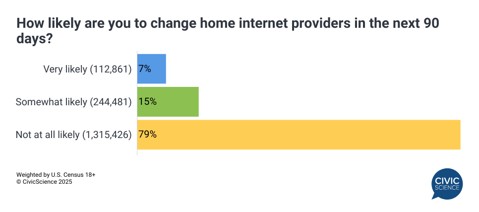 Over 100,000 people have told us there’s a good chance they’ll switch home internet services in the near future. Will all or even most of them actually do it? Definitely not. But it’s a really strong indicator that they’re thinking about.