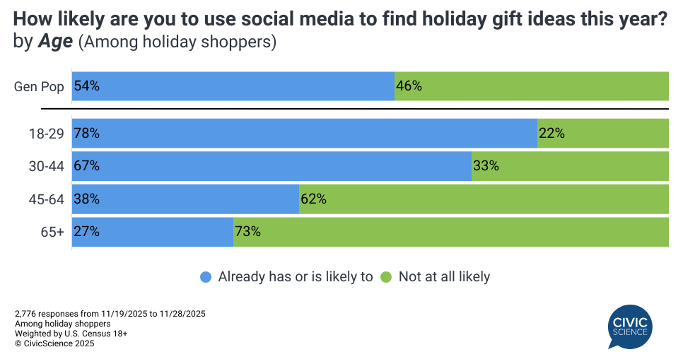 But don’t sleep on the impact of social media on holiday retail. While the emergence of AI as a factor in gift ideation is a big headline this year, it still pales in comparison to social media’s influence during the shopping season. Over half of U.S. shoppers say they’ve turned to social platforms for gift ideas this year, including 78% of Gen Zs. Meanwhile, the percentage of TikTok users who have shopped for gifts on TikTok alone is up 50% since 2024. Naturally, the numbers are highly correlated with the number of difficult-to-buy-for people a respondent has in their life.